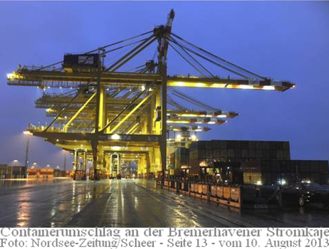 Wie die Nordsee-Zeitung am 10. August 2013 berichtete, weist auch die Halbjahresbilanz in diesem Jahr ein schlechteres Ergebnis aus als bei den Konkurrenzhäfen in Rotterdam und Antwerpen. Die Hamburger haben ihr Ergebnis noch nicht veröffentlicht.